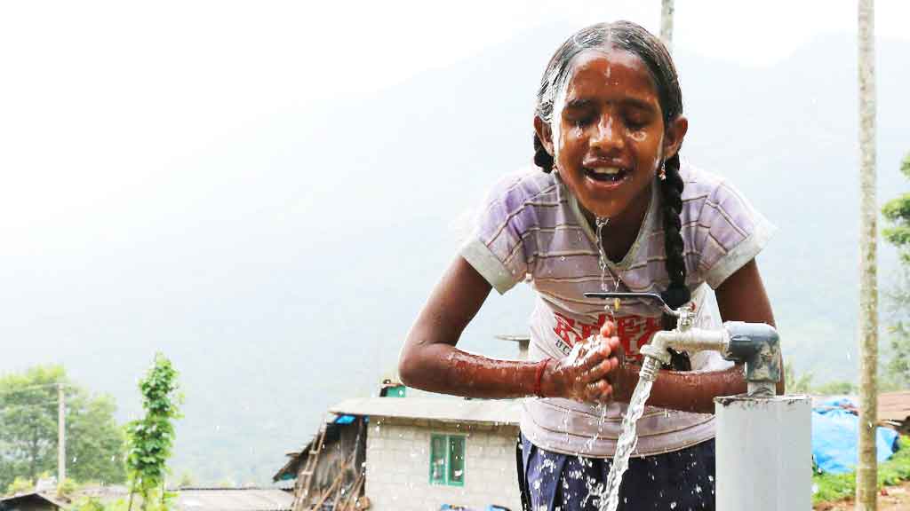 A girl using WASH facility as provided by the project AmritaSeRVe