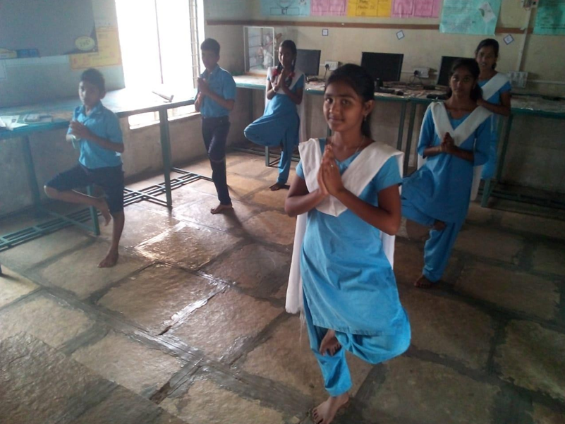 WCF school students practicing yoga