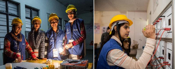 Young women electricians doing practical session